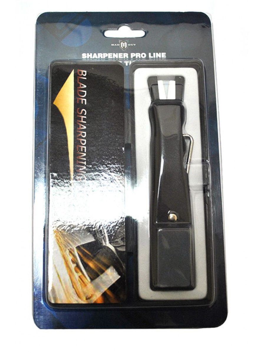 Инструмент имеет абразивный камень, который вмонтирован в ручку, при помощи которого можно поправить заточку. В торце расположена керамическая вилка, которая позволяет снять заусенцы, или поправить лезвия, что позволяет увеличить интервал между заточкой.