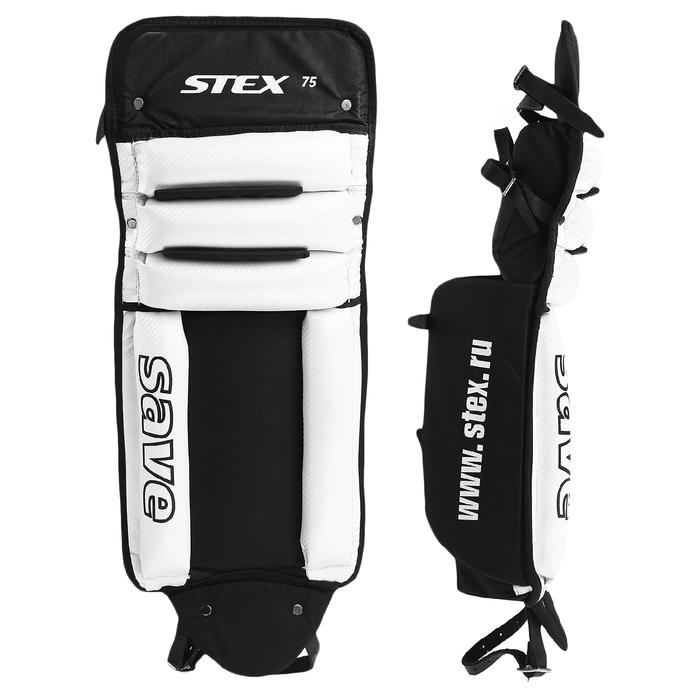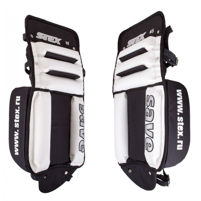 С внешней стороны многосекционная конструкция защитных валиков, обтянутых кожей и набитых синтетическим волокном. С внутренней стороны дополнительная мягкая вставка, для обеспечения фиксации щитка на ноге.