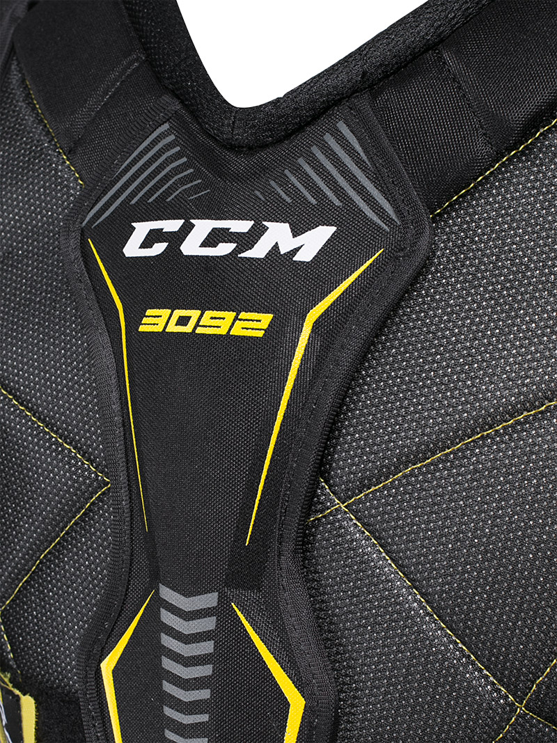 ♦ Огромная пластиковая защита грудины создает максимальное покрытие и надежную защиту, в то время как трехкомпонентная конструкция передней панели обеспечивает полный диапазон движения.