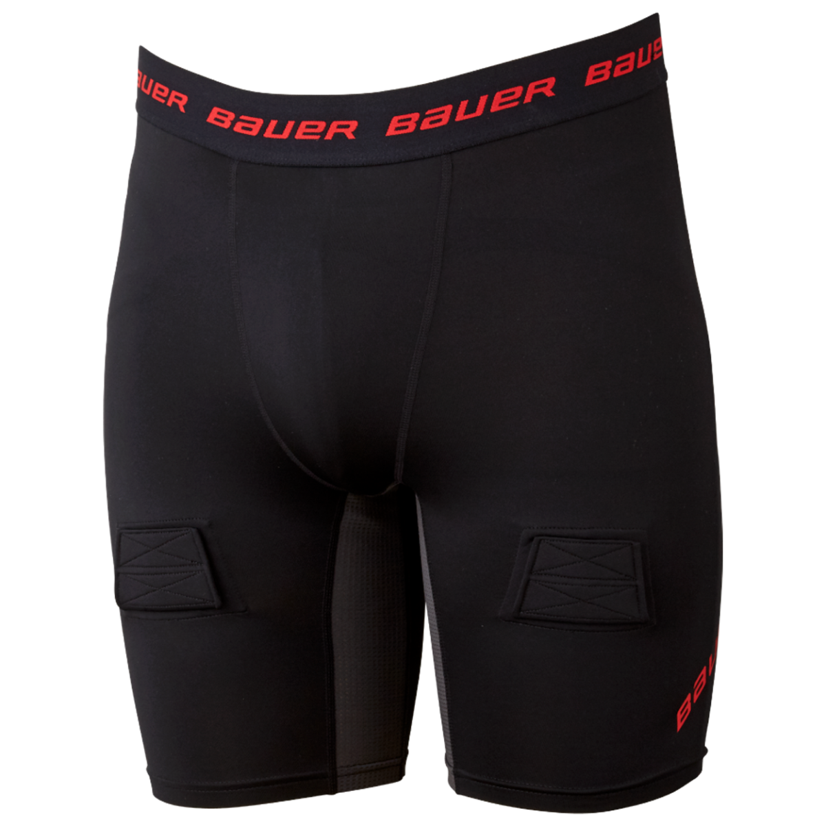 На штанинах расположены накладки с застежкой-липучкой для фиксации хоккейных гетр.