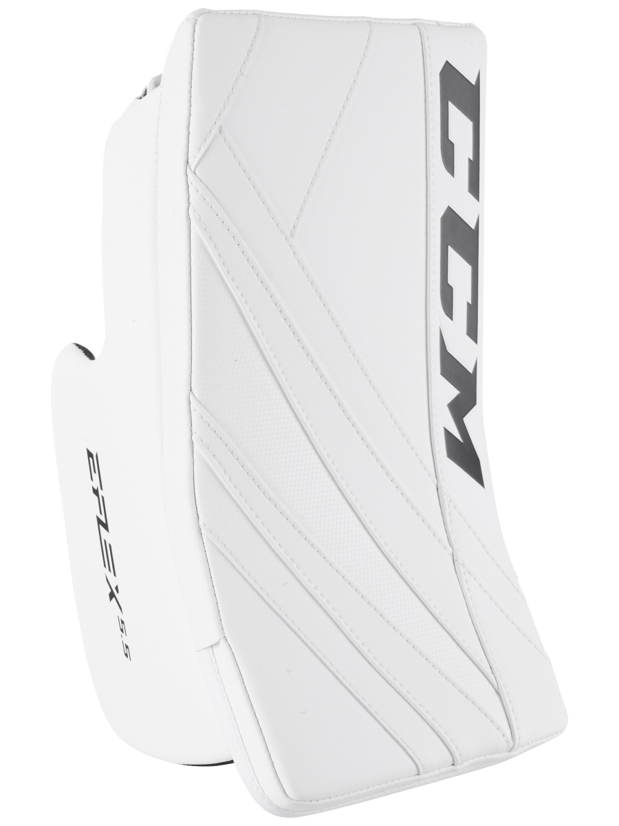 Конструкция EFlex E5.5 построена из ламинированной пены двойной плотности, усиленной пластиковым элементом. Все это позволило создать тонкий профиль, дающий вратарю четкое чувство контроля отскока при отражении броска без потери защитных свойств. Вся поверхность блокера покрыта фирменным синтетическим материалом “Speedskin”, который предлагает лучшие эксплуатационные свойства из всего, что использует CCM.